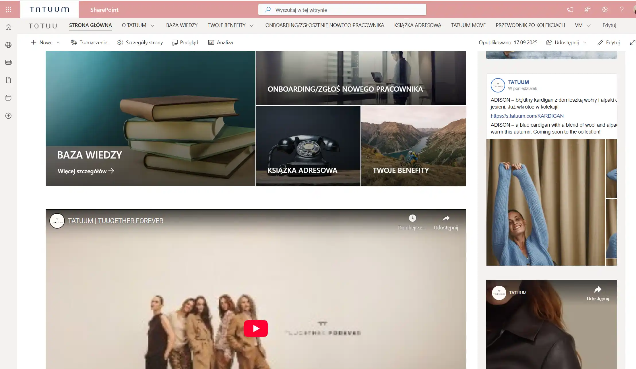 W TATUUM przywiązuje się dużą wagę do transparentności, zrozumienia potrzeb pracowników, słuchania ich głosu. Chodzi o tworzenie miejsca pracy, w którym z troską podchodzi się nie tylko do ubrań, ale przede wszystkim do ludzi. SharePoint wspiera te idee, co firma obserwuje w przypadku najpopularniejszych treści, które są zamieszczane w intranecie, a następnie w formie newslettera wysyłane automatycznie na adresy e-mail i jako powiadomienia w Microsoft Teams.