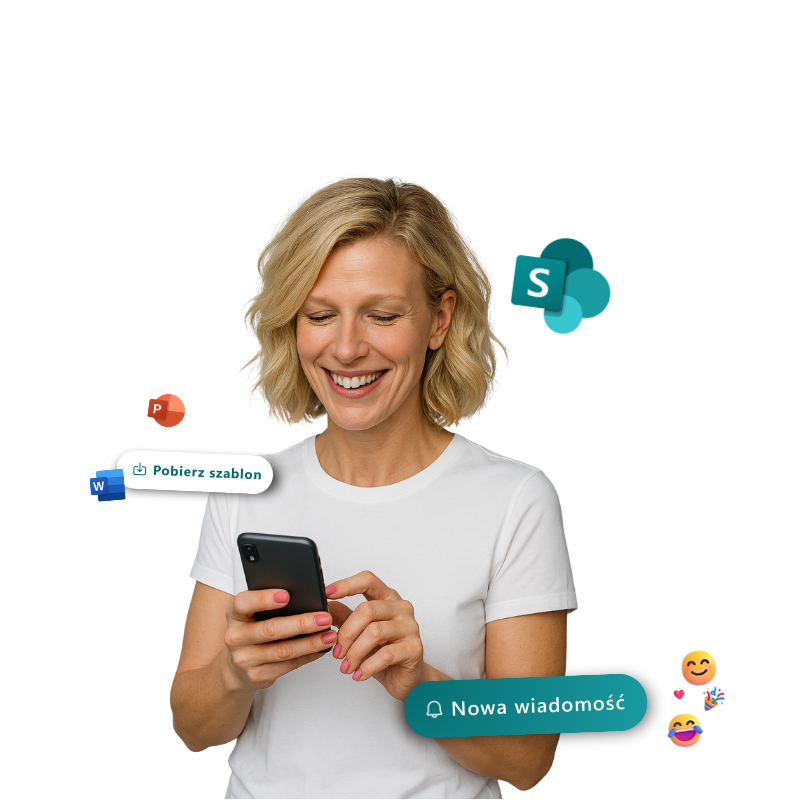 Niezależnie od celów – to wszystko znajdziesz w ramach jednej platformy – w intranecie Microsoft SharePoint Online, do którego logujesz się ze swojego firmowego konta Microsoft.
