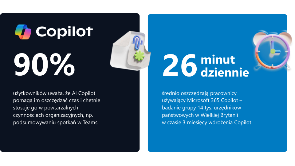 Zamiast ręcznie przekopywać się przez maile, dokumenty i prezentacje, pracownicy mogą skorzystać z pomocy Copilota do błyskawicznego wyszukiwania informacji, tworzenia treści i podsumowań dopasowanych do kontekstu ich pracy. To przejście z trybu ciągłego gaszenia pożarów do pracy zorganizowanej, bardziej strategicznej, a także twórczej.